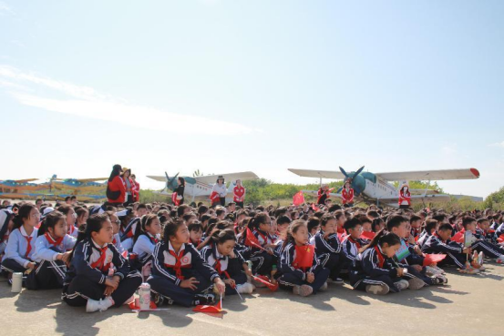 課程開始前,同學(xué)們有序聚集到了荊門通航老機(jī)坪,在一架架觸手可及的飛機(jī)前開始了本次科學(xué)教育實(shí)踐課。荊門通航工作人員介紹了公司基本情況,然后給同學(xué)們科普了國(guó)內(nèi)外航空事業(yè)發(fā)展歷程,還著重介紹了我國(guó)自主研發(fā)的國(guó)產(chǎn)三大飛機(jī)運(yùn)20、C919、AG600。同學(xué)們聽聽的認(rèn)認(rèn)真真,對(duì)航空事業(yè)發(fā)展脈絡(luò)有了初步的認(rèn)識(shí)。