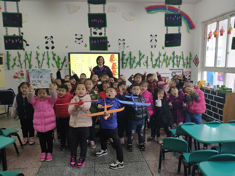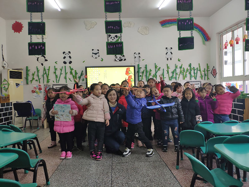 最后科普人員向孩子們分發(fā)手拋飛機玩具,科普人員與孩子們一起動手,拼接好玩具,并講解正確的飛行方法。孩子們開心地拿著飛機玩具在教室里放飛,看著飛機可以飛向他們所拋的方向,他們歡呼雀躍。