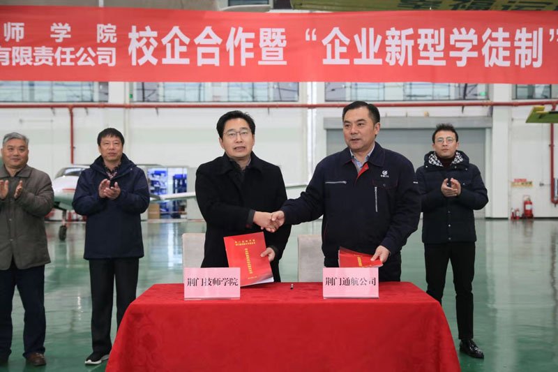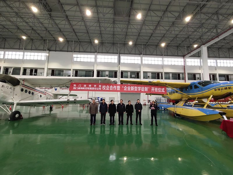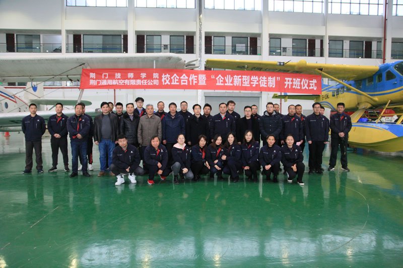 2019年11月27日,荊門通用航空有限責(zé)任公司(簡稱“公司”)、荊門技師學(xué)院校企合作簽約暨“企業(yè)新型學(xué)徒制”開班儀式在公司圓滿舉行。荊門技師學(xué)院院長許松、漳河新區(qū)社會事務(wù)局副局長易斌等相關(guān)領(lǐng)導(dǎo)、人員出席了開班儀式,公司領(lǐng)導(dǎo)及參訓(xùn)學(xué)員共三十余人參加了儀式。