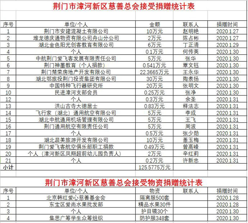 1月31日,為更好救治病患,荊門通航又響應(yīng)“一方有難,八方支援”號召,為荊門市漳河新區(qū)慈善總會捐贈5萬元,用于購買各類物資。